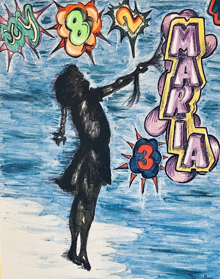 Il quadro è un omaggio ad un artista che amo tanto, il grande Banksy, ed doveva essere un regalo per una persona in particolare, ed è per questo che è stato inserito il nome Maria. I numeri sono un chiaro riferimento a fattori algebrici, in quanto la persona a cui è stato regalato il quadro è una pr...