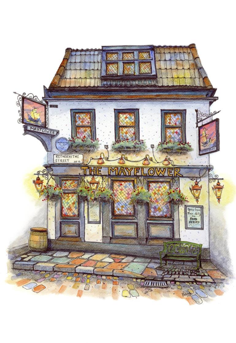 This ancient and charming pub which is my 'local' . Established in the 1500s, it is one of the oldest pub by the Thames River. It is located at the original mooring point of The Pilgrim Fathers’ Mayflower ship which, under the command of Captain Christopher Jones, set sail from the site in July 1620...