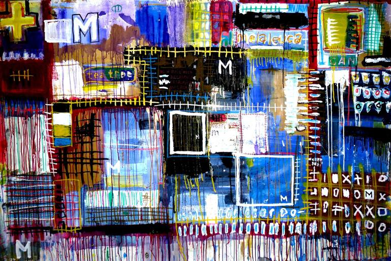 Eddie Love’s work resists easy explanation — a vivid collision of color, texture, and meaning balanced with recurring motifs & gestures in distinct styles that intriguingly demand engagement yet feign aloofness. His mixed-media pieces pulse with frenetic energy, blending abstraction with raw social commentary. Layers of bold strokes, unexpected materials, and cryptic text explore chaos, decay, and modern life; inviting viewers to decode their own truths - embodying what can be described as Socio-Pop art. The presented works are diverse in character, statement, and media. Whether on large unstretched canvases or smaller structured surfaces, Love’s prolific work is an unfiltered stream of consciousness—immediate, overwhelming, and undeniably compelling. For those willing to step into the storm, his art lingers long after you’ve looked away.