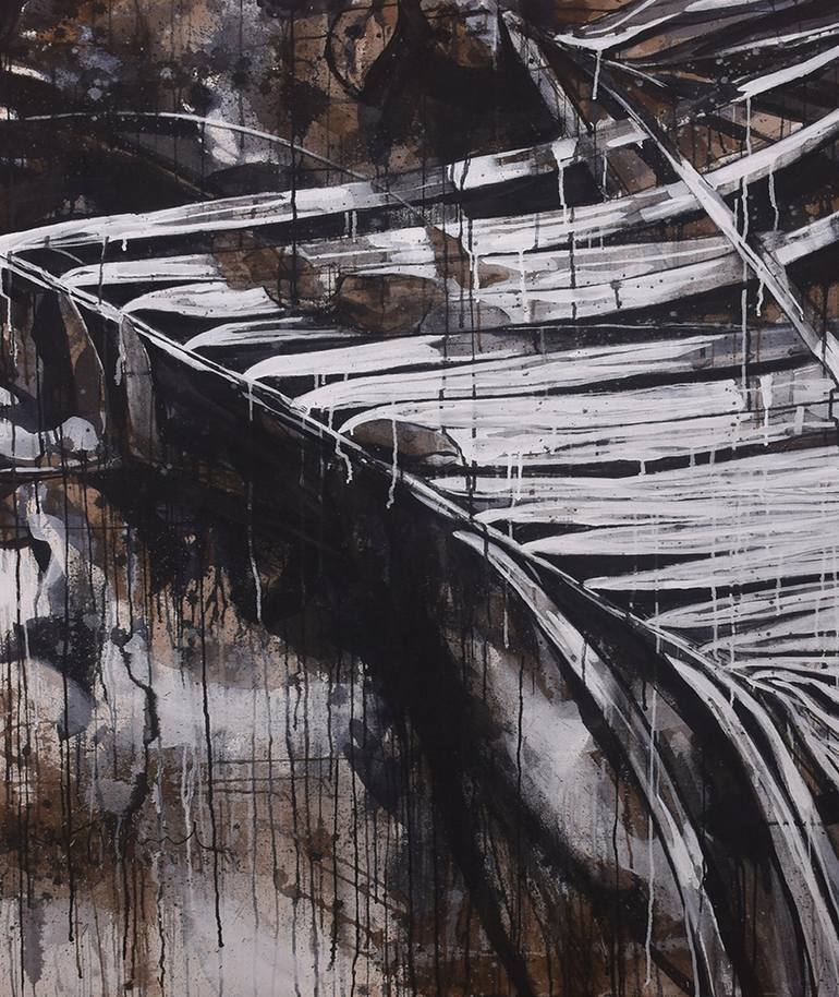 I illustrated the work of the 'liquid landscape' series with the depiction of trees in a semi-abstract, hard and stiff style to describe the nature of the forest today which no longer refreshes our feelings when we are in it, just the trees that are not left after being explored. The color is stiff ...