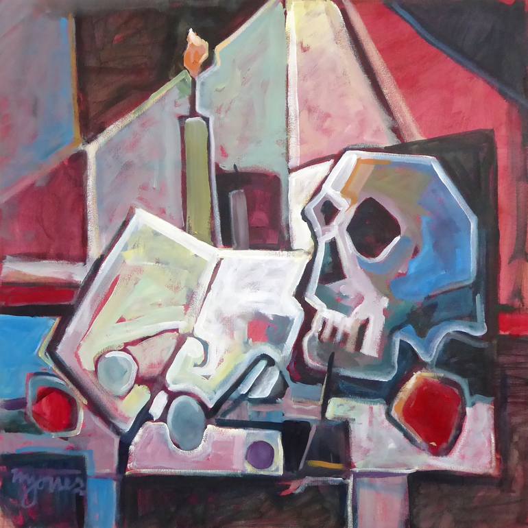 "MEMENTO MORI" is an original 24 x 24" acrylic painting by Micheal W. Jones. This lovely cubist painting was created from original sketches, using the finest pigments on acid free stretched canvas, and will be shipped directly to your door from the artist's studio.
