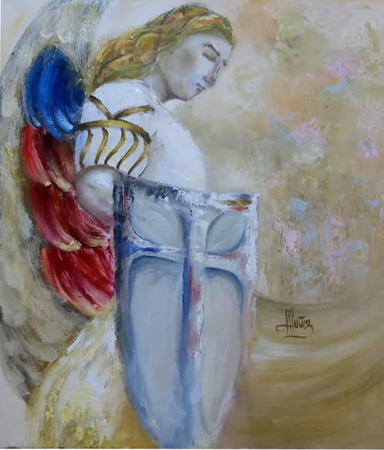 "MIKAEL" is a beautiful original oil painting on canvas, inspired by Saint Michael, the Arcangel. Known as a celestial warrior, Saint Michael embodies fidelity, protection, and illumination. His Hebrew name, represented in the title, translates to "Who is like God?" a testament to his unwavering dev...