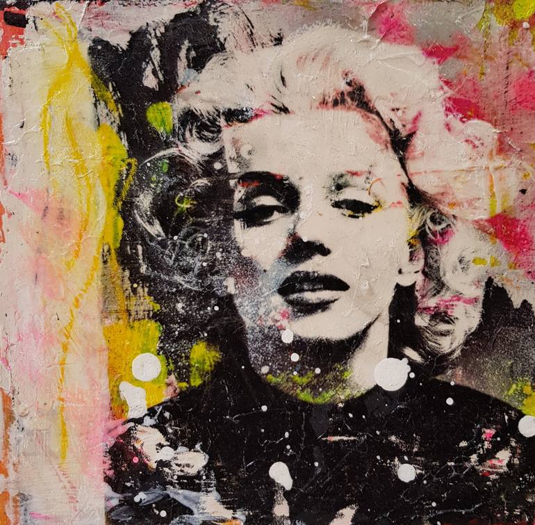 Caroline Weber is a Swiss Artist, living and painting in middle of Switzerland. That painting is a mixed media work. A blend of digitally images and a handmade painting put together into a new work. It is a combination of a handmade transferprint, acrylic paint, different gel mediums, pastel colors...