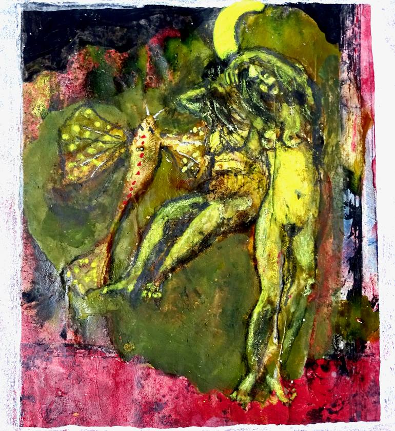 The picture plays with the imagination while listening to Beethoven piano sonata No. 14 op. 27 Nr. 2 , called the Moonlight Sonata. Surely everyone who listens to the music lives in his own fantasy world. This one was mine, while painting.