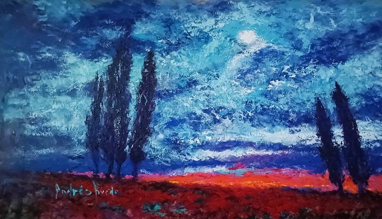 Andres is a contemporary painter whose work explores the emotional power of color, texture, and abstracted landscapes. His paintings blend expressive brushwork with vibrant palettes, creating immersive scenes that oscillate between reality and imagination. Through layered pigments and dynamic movement, he captures fleeting atmospheres—moments of light, silence, and transformation that invite the viewer into a contemplative experience. Based in Spain, Andres draws inspiration from nature, memory, and the shifting moods of the environment. His work resonates with collectors seeking original pieces that combine strong visual impact with poetic depth. Each painting is created with meticulous attention to detail and a commitment to authenticity, making his portfolio a compelling addition to contemporary art collections worldwide.”
