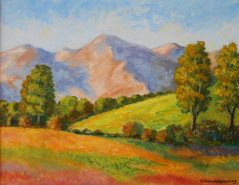 MOUNTAIN ERYMANTHOS is my latest work painted by oil colors on hard 340gr paper. Actual dimensions are 40X50cm This work inspired from my visit for walking in May 2022 . My wife likes this landscape too much and asked me to paint this with watercolors . So I did it and offered to her as gift . Off...