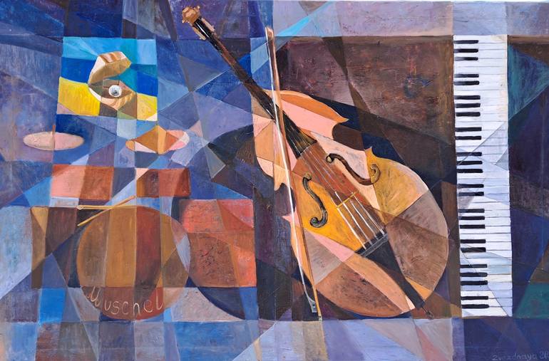 This large-scale oil painting (90 × 140 cm) by Iuliia Kotenko explores the poetic intersection of visual art and music, drawing inspiration from both the mythological Birth of Venus and the contemporary musical group Muschel (German for “Shell”). At the heart of the composition is a majestic seashe...