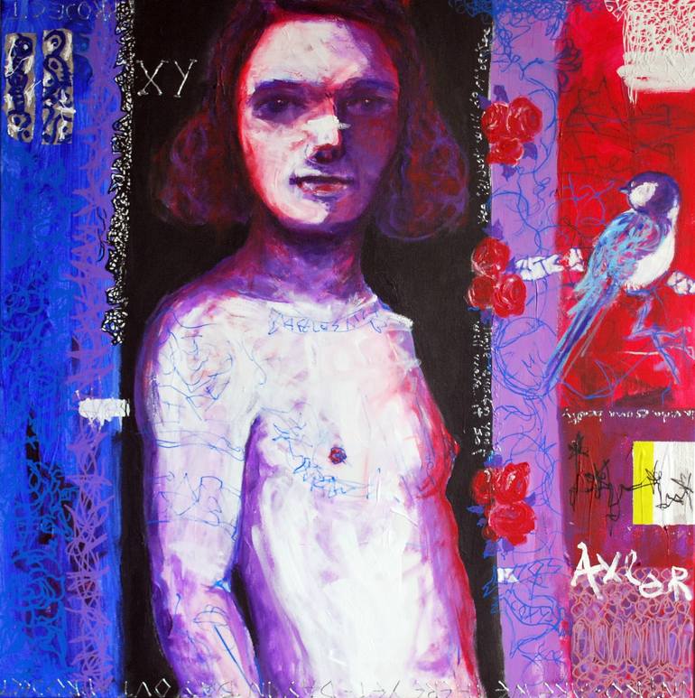 Of hidden or esoteric meaning of mystical significance. Part of the seres of works titled Mystico. Courbet and asian ornaments inspired the painting.