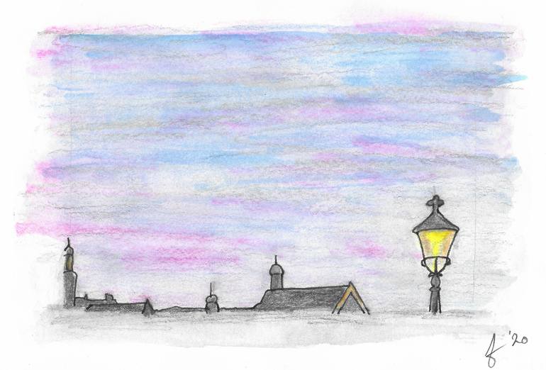 Original watercolor on art paper, 180 gsm. Sunset are always a great subject. This is nr 6 in a series of watercolor skylines. Maastricht is a beautiful city, and has always been a favorite object of day trips for the Dutch and Belgians alike.