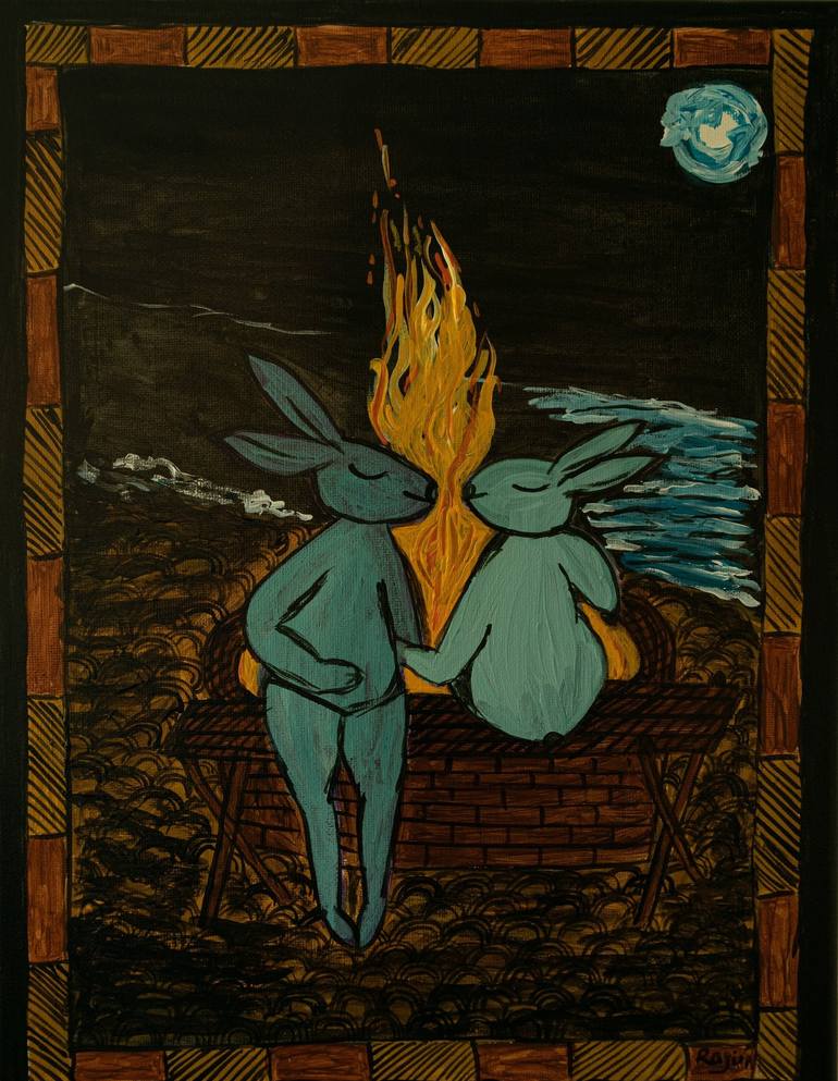 Saagar Kinare(by the beach) at night in Madhubani Art. An art form practiced in Mithila region of Bihar in India. This Art is made on canvas with Arylic paint. If you have any other size preference, please contact me for pricing. Madhubani Art (or Mithila painting) is a style of Indian painting, p...
