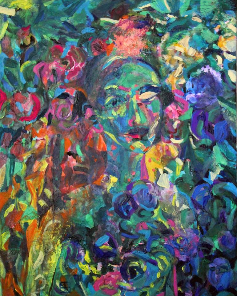 She weaves her magic in an overgrown garden becoming one with light that holds her trust. This piece is about the magic of gardening, majestic plant life, becoming one with nature, romance of planting things, and filling your life with flowers. Layers and layers of translucent acrylic washes and th...