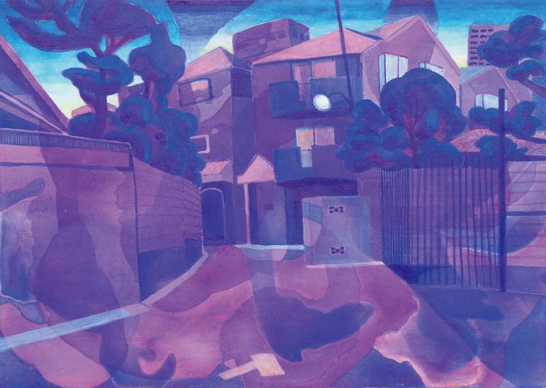 Using Japanese materials besides acrylic colors. Recently I focus on sunset time. This is just plain my home street in downtown Tokyo. But you would see something unusual when just after sunset. You would recall old time or catch some hints of future. I feel I can see something invisible. Just a d...