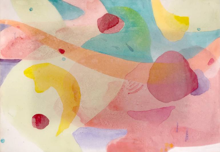 While traveling I often make sketches on my small sketchbook humming, napping, being happy. I use acrylic and Japanese paints on a stretched polyester fabric on a wooden frame. The polyester fabric is slightly translucent. I love the surface. I feel the light on those. This work is not for sale temp...