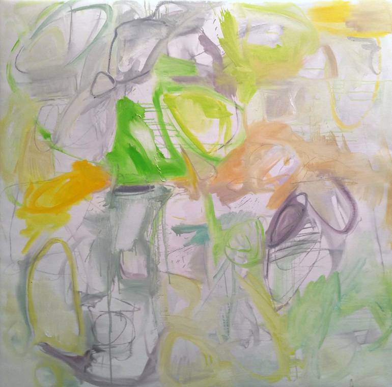 2013 oil on canvas 48 x 48 inches large format square *This painting has been exhibited at Rockefeller Center in 2014! This painting is very dynamic and free. It would add an uplifting splash of color to any room. To me, this painting expresses how much joy we are capable of feeling if we let our...