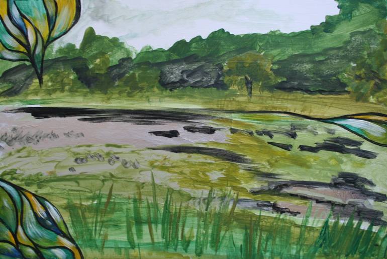 Magic lake; canvas on cardboard, acrylic, foil; 2021; 40 x 60 cm; 15.74 x 23.62 inches I made some landscapes with acrylic and foil. This one is available for sale. Art work is dedicated to a special place in our heart, into which we go to be alone with our thoughts. This art work is one of the las...