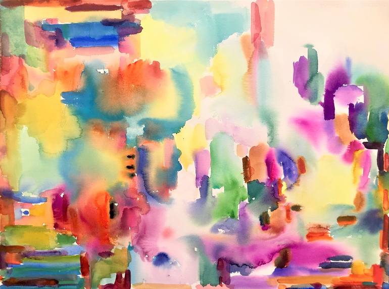 I exhibited in the International watercolor exhibition in Bali Indonesia and was so inspired by the meeting of artists from all over the world and the beauty of Bali that when I returned to Jerusalem I had such good strong energy and created this painting which I love very much on heavy watercolor w...