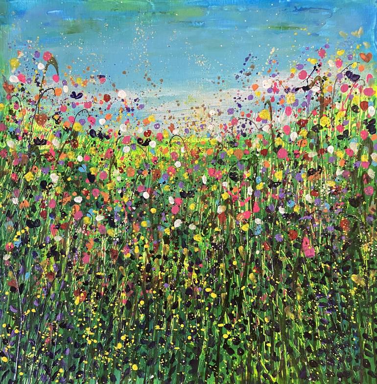 A magical garden buzzing with flowers in various bright and beautiful shades.