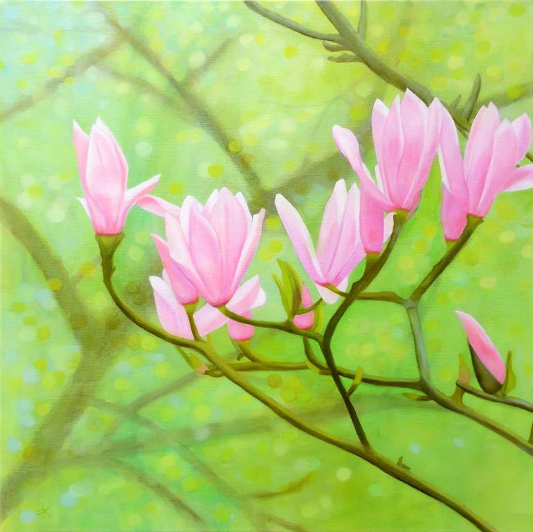 Magnolia in early spring. deep edge canvas 4,5 cm / high quality linen stretched on aluminium frame / sides are painted, ready to hang.