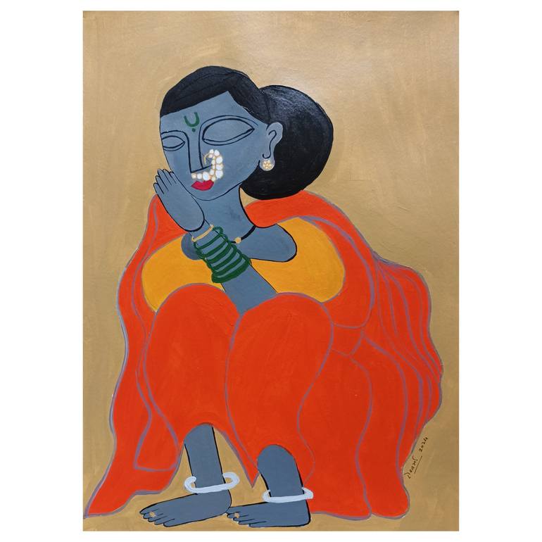 Maharashtrian woman has inspired this contemporary style painting.