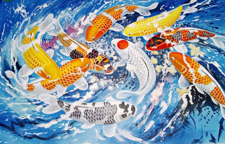 Bring prosperity and good fortune into your home with this stunning oil painting of nine koi fish. These majestic creatures are symbols of abundance, perseverance, and good luck in many cultures. The vibrant colors and lifelike details in this painting will captivate you and your guests. This is ...