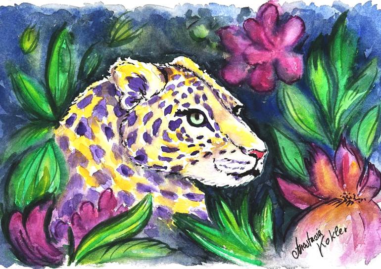 🖌️🎨Unique Artistic Style: Drawing inspiration from Takashi Murakami, it radiates bold, fantastical color with a crisp white border for a finishing touch. This stunning watercolor and marker painting of a leopard in a lush jungle is a perfect art decor piece for any space. With its vibrant mix of y...