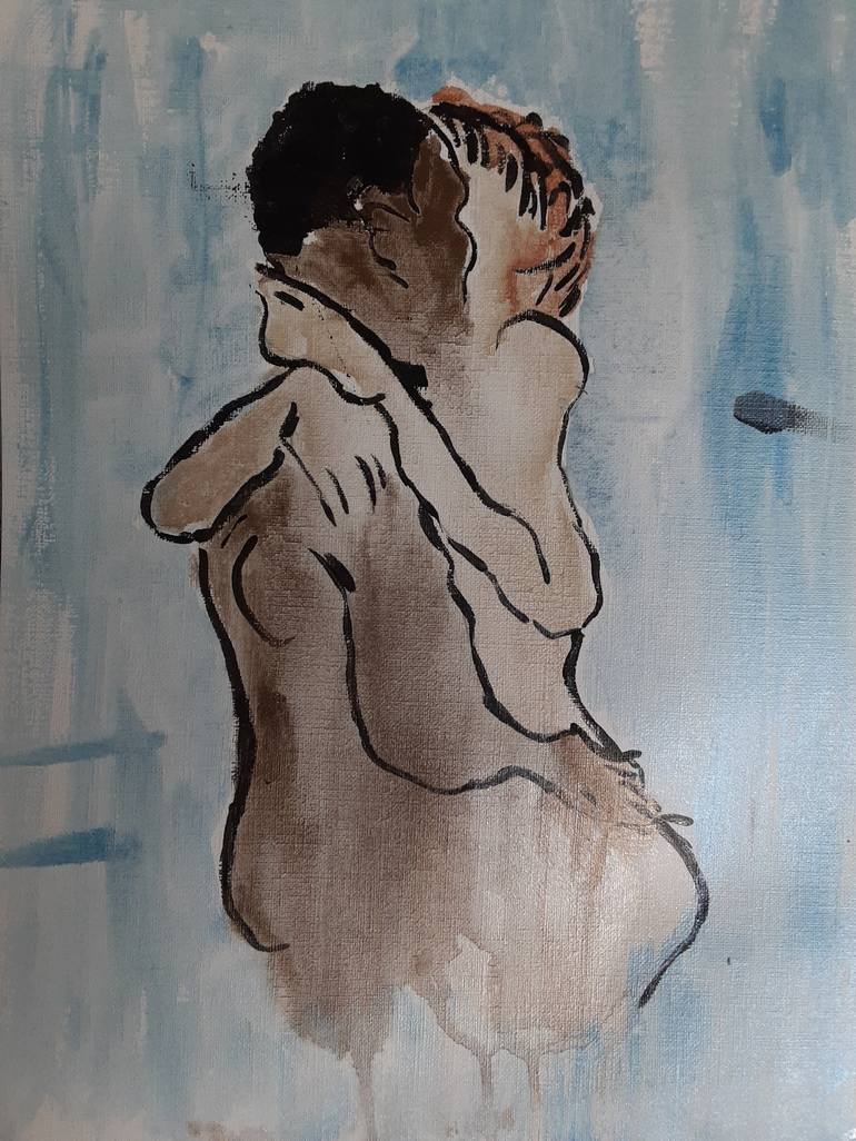 This is a 9x12 watercolor and acrylic painting, unframed. It was painted on 136 lb. acrylic paper. It is part of a series that I am working on about feelings that I am trying to get over.