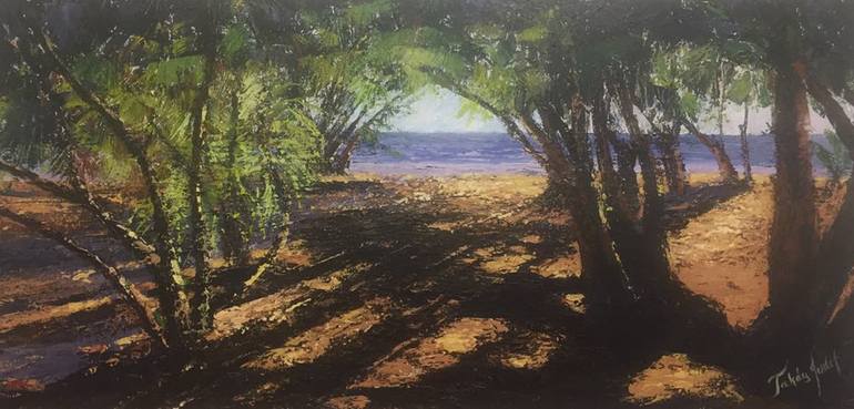 I have seen the most beautiful sunset on the sandy beach of Maldives, I painted it with my favorit palette knife technique