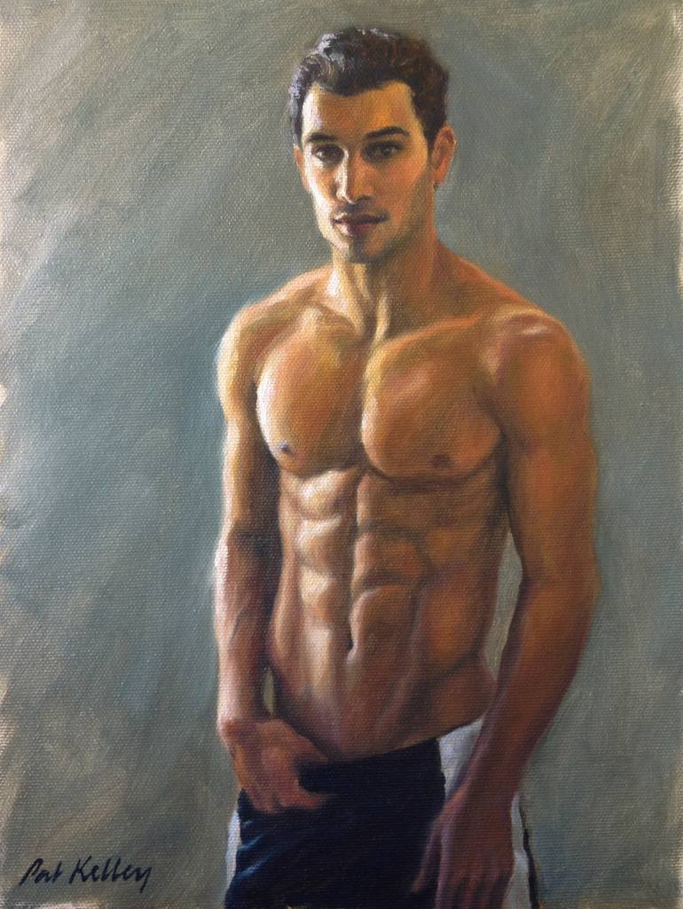 This painting is a figure study and portrait of a handsome man. I wanted to do a study of this gorgeous man and his athletic musculature while keeping a focus on painterly brushwork, texture and light. I'm happy that I also captured a sweet expressiveness in his face. The golden tones of his body ar...