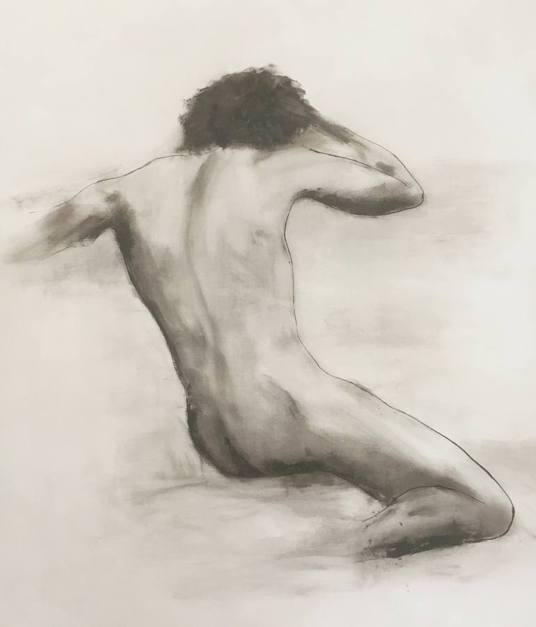 Male nude artwork from my human form studies expressing the human express a feeling of rest and isolation. Created with an ink outline on Fabriano heavyweight paper before adding light and texture with layers of oil paint. Signed and dated by the artist ready for framing or loose hanging.