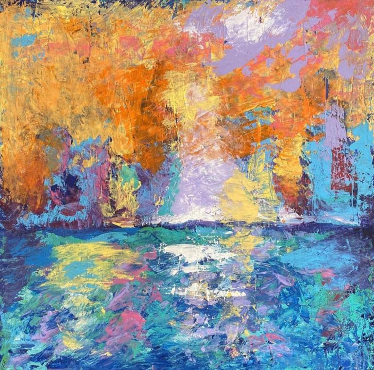 This painting was inspired by the first time I saw Malibu at sunset. The colors were so bright it was a chaotic beauty. I layered the paint with a palette knife. I hope the colors cause a reaction of joy and can make the viewer feel a little brighter. The original painting is with my lifelong friend...