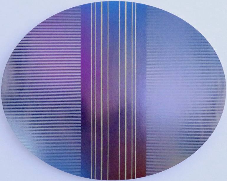 Mångata 52 Oval (grid painting, abstract, geometric, wood, optical, atmospheric, gold, Art Deco, oval panel, circular painting, pastels, stripes) Print