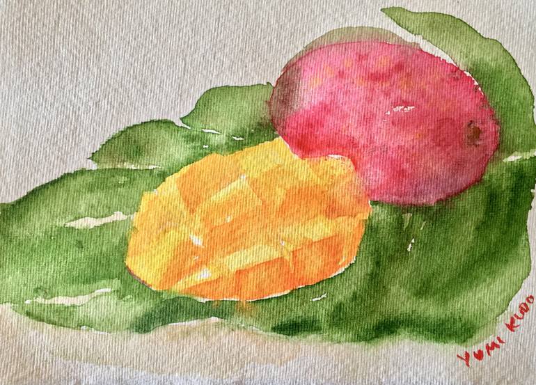 Still life painting of mangos. Painted in watercolours. Mango is one of my favourite fruits in summer.