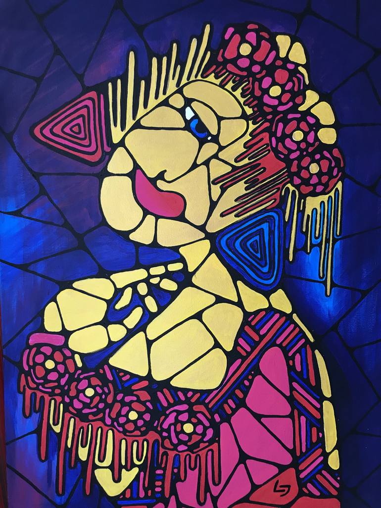 Original acrylic painting on canvas. Figurative art. The picture is painted in stained glass style. The image consists of small fragments. The sides are always a continuation of the picture. This provides a good view of any environment and this makes it possible not to use an additional frame. Signe...