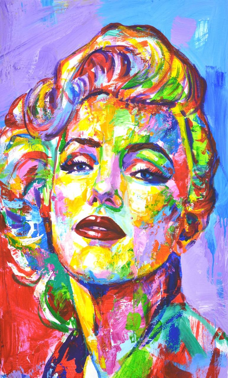 Marilyn Monroe 10. American film actress, singer and model. An iconic image of American cinema and the entire world culture. Painted in a modern style with brushes and a palette knife. Pop Art. Expressionism. Modern. Abstract. Realism. A bright palette of colors was used: red, yellow, green, pink, b...