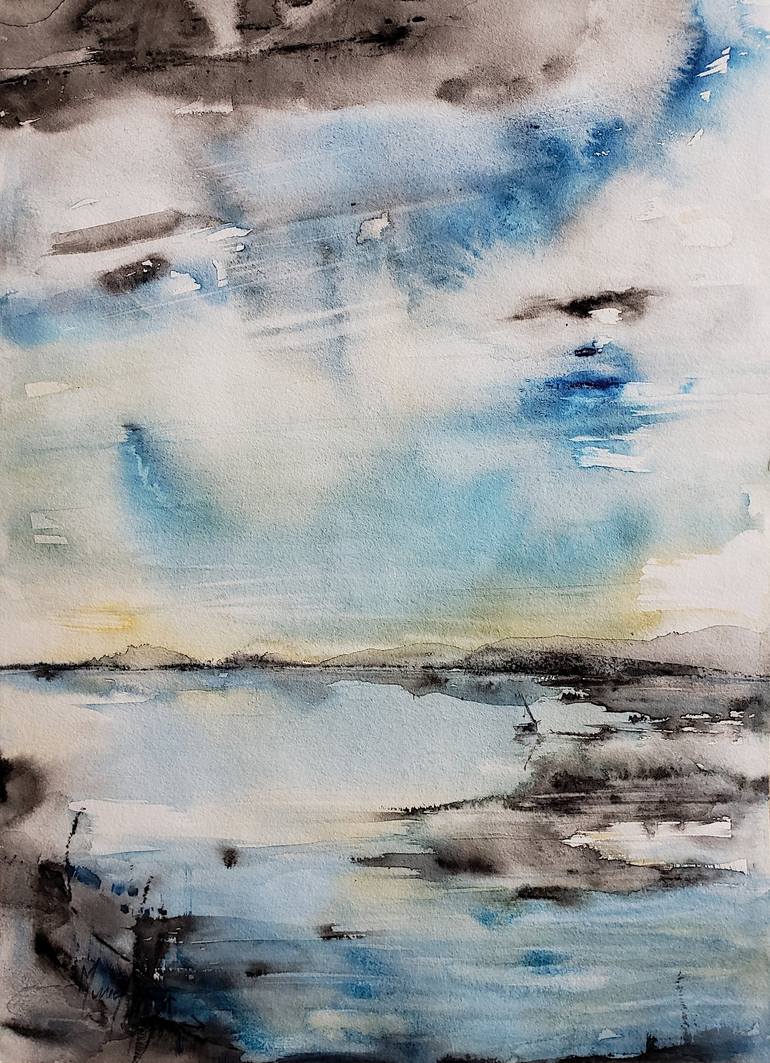 Watercolor on 300g paper. After a stay in Brittany, I painted a series of works inspired by these timeless and sublime seascapes. Created with large Chinese brushes on 300g watercolor paper, I released my gesture in the water using a limited number of colors. I have thus created works close to abstr...