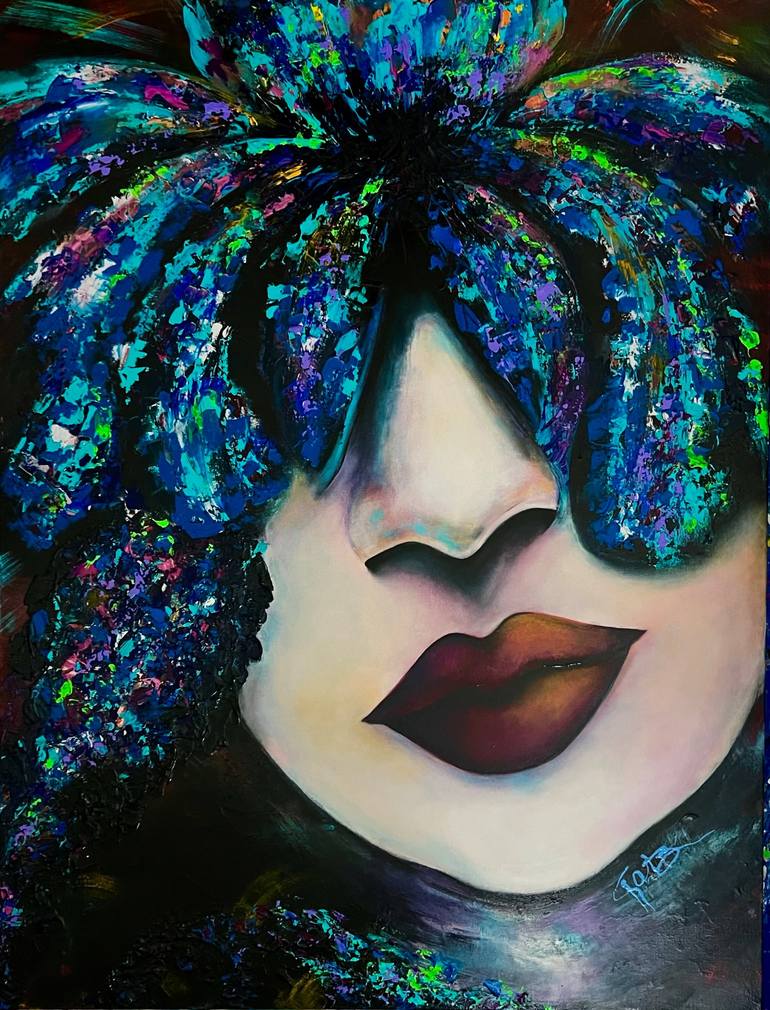 Starting to do a portrait I got side tracked and decided to make it unidentifiable. No gender, no eyes, and void of expression. Somewhere between hair (possibly) and the wings of a butterfly..... this is what I see. Work was done primarily with a palette knife to achieve heavy texture. The piece ...