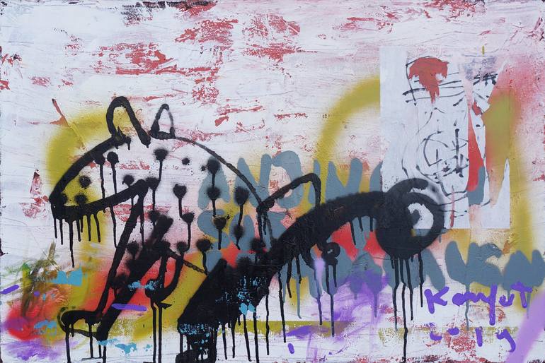 Junaidi / Djunaidi Kenyut reflects his observation of the urban phenomenon in his daily life onto his works. Walls on the street are some of his major source of visual inspiration today. Perhaps, because when he was young, he spent his spare time as a newsboy on the city street where he found those walls full of scribbles. Some are meaningful, some are really artistic, and some are just one messy corner. But these scribbles speaks a thousand words that later become a strong part of Kenyut's journey as an artist.  Once he finished his formal study in high Surabaya High School of Fine Art (SMK11), Kenyut moved to Ubud, Bali in 2007. The creative synergy that Ubud holds has offer him a chance to do more artistic exploration. Together with his close friend, Anas Etan, he established Bledog Artspace, a non-profit arts gallery that has been used for local or international artist to exhibit their artworks since 2009.  Being part in numerous art activities locally and internationally, Kenyut never stop learning and creating artworks wherever he goes. He held several solo exhibitions and also being participated in some artist exchange such as Malaysia and South Korea  Djunaidi Kenyut likes to experiment with different kind of medias without neglecting his idealism as an artist. Berkarya dengan media apa saja. Making art works with mixed medium. .kenyut