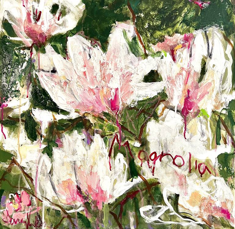 What better inspiration than Spring...there is a magnolia tree across the street....big beautiful pink and white blooms staring me in the face...so difficult not to paint...layers of shades of white with touches of soft pink and deep green all make for a wonderful painting...you can have spring all ...