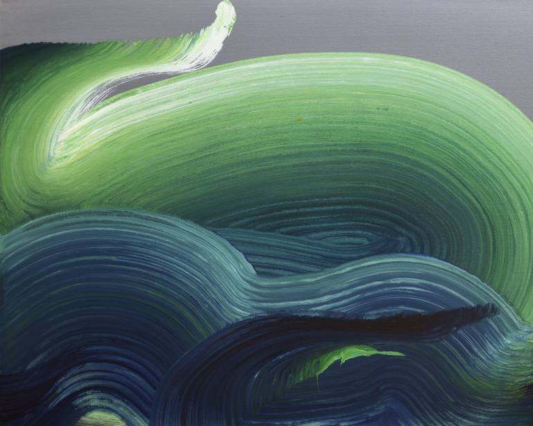 The marvelous ocean waves and its perfect balance of rhythm and tones. Dance of energy in the refreshing early spring air. Layers of acrylic brush marks over gessoed canvas board. Ready to frame.