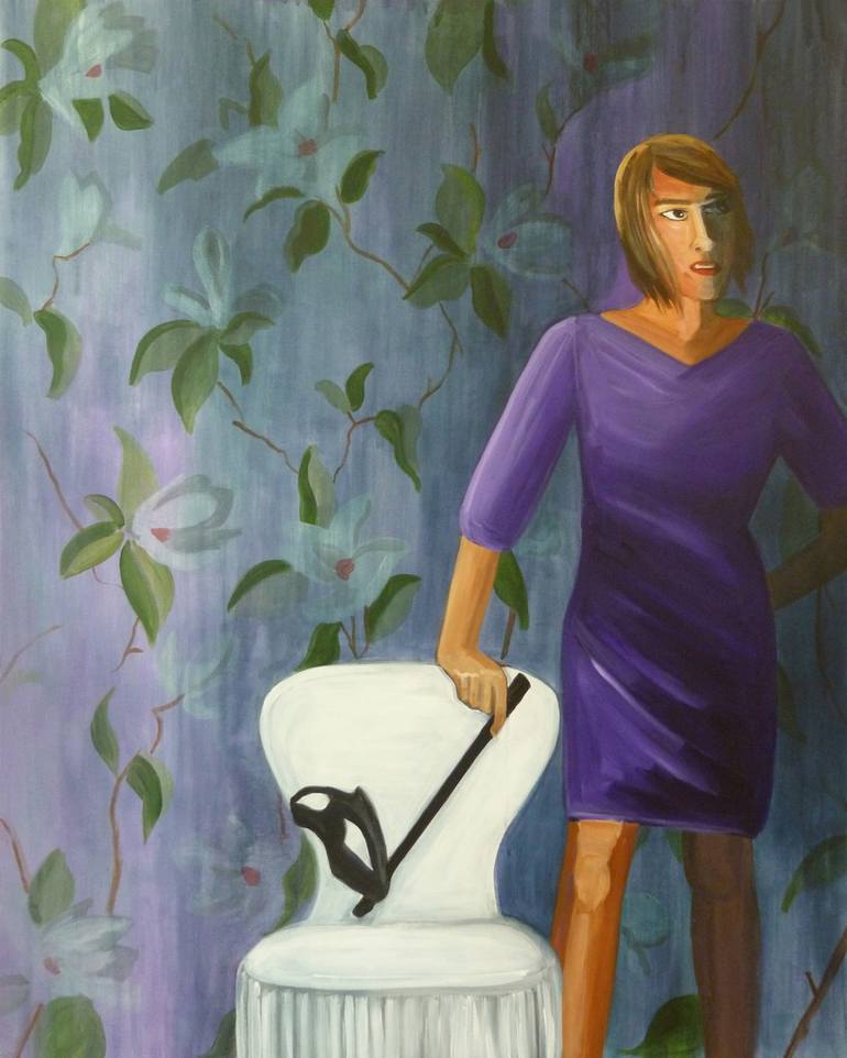I was born in Boston, Massachusetts and moved to Los Angeles after college. I received a B.F.A. in Painting at Rhode Island School of Design. I am married and have 2 children in college. I have always been interested in the distance between people, the separateness that can exist in relationships. Physical and emotional space between people can be complicated; people can inhabit very different realities even when they share the same space. To explore this, I paint narratives where the figures seem to be alone in their own worlds or unaware of each other’s presence. Sometimes I will use a diptych or a triptych to make the separation more literal. The images I am drawn to are ones that spark memories from my past; self-conscious, lonely, and stoic moments from childhood, adolescence and adulthood. Subtle body language reveals hidden tension. These images are inspired by personal and family photographs, newspaper, or magazine images that conjure up emotions and situations that I have experienced, but believe to be universal.