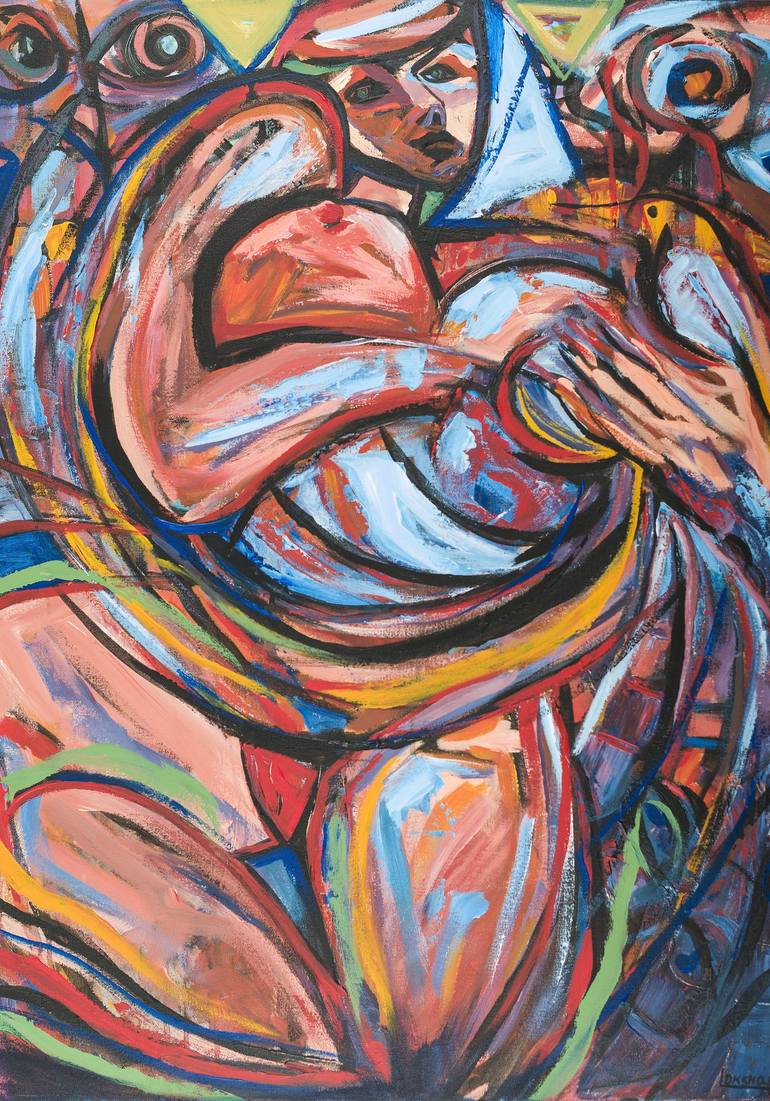 Woman, maternity, love and peace inspired me to paimt this picture in acrilyc.