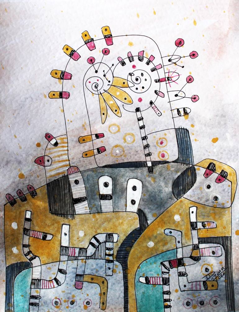 Painting part of a series of abstract and figurative, taking into account the stroke of the brush and the color above the forms.