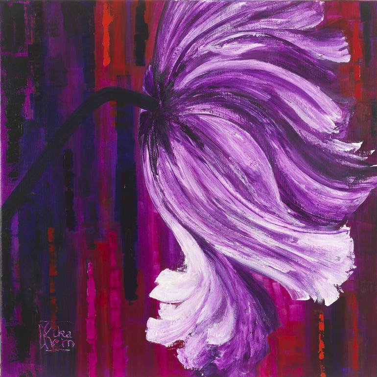 Purple poppy, purple frame. Dimensions with the frame : 77 x 77 x 6 cm / 30 x 30 x 2 in