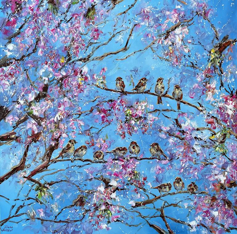 Collection «Sparrows» * * * «Diana Malivani passionately conveys her effervescent personality through each graceful touch of paint to canvas and her use of texture manifests itself as a creative haven upon which she symbolically cultivates organic pastures that possess the ability to simultaneousl...