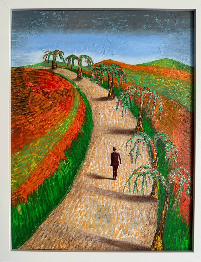 Acrylic, oil and collage on panel 43x33cm The juxtaposition of the three different techniques (digital, oil and acrylic) creates a distinctive depth and intensity.