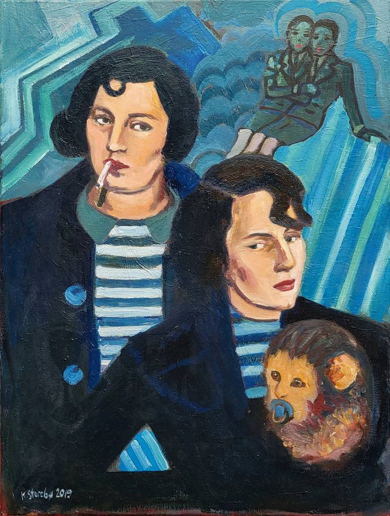 After having my first child, my life had gone from being able to spend my days sitting in a pub, to being relied on by a little person. This painting shows me as two different women. For both characters in the painting I have used women from Brassai's photographs, who were originally photographed in...
