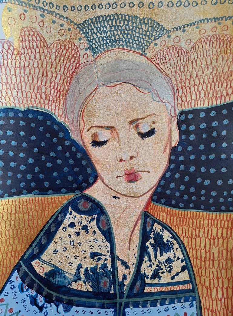 Acrylic, pencil and ink on acid free paper. This picture is a part of my portrait series.