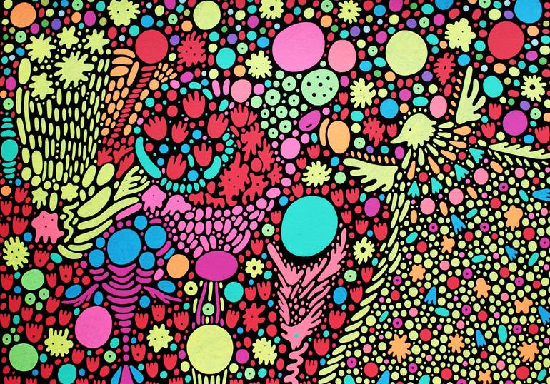 I like to combine different materials and experiment with abstract compositions. It helps me in the work that I was educated in the basics of composition and colors. I use abstract, natural, and surreal motifs in my paintings. I love to find inspiration in natural geometric shapes and textures, exotic plants and animals, and imaginary worlds from books and films. I often paint intuitively and by impression, without any sketch or clear idea. The process of painting is a kind of meditation for me and it gives me a sense of spiritual freedom. In general, my art is a whole universe of patterns, details, textures, characters, and shades of colors. Each picture is like a puzzle in the endless mosaic of this world, and many visual and semantic motives move from early paintings to the latest pieces of art.