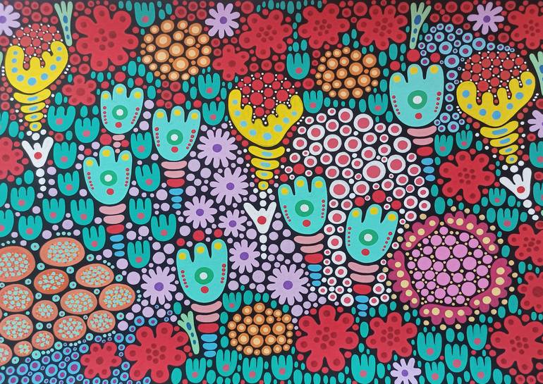 I like to combine different materials and experiment with abstract compositions. It helps me in the work that I was educated in the basics of composition and colors. I use abstract, natural, and surreal motifs in my paintings. I love to find inspiration in natural geometric shapes and textures, exotic plants and animals, and imaginary worlds from books and films. I often paint intuitively and by impression, without any sketch or clear idea. The process of painting is a kind of meditation for me and it gives me a sense of spiritual freedom. In general, my art is a whole universe of patterns, details, textures, characters, and shades of colors. Each picture is like a puzzle in the endless mosaic of this world, and many visual and semantic motives move from early paintings to the latest pieces of art.