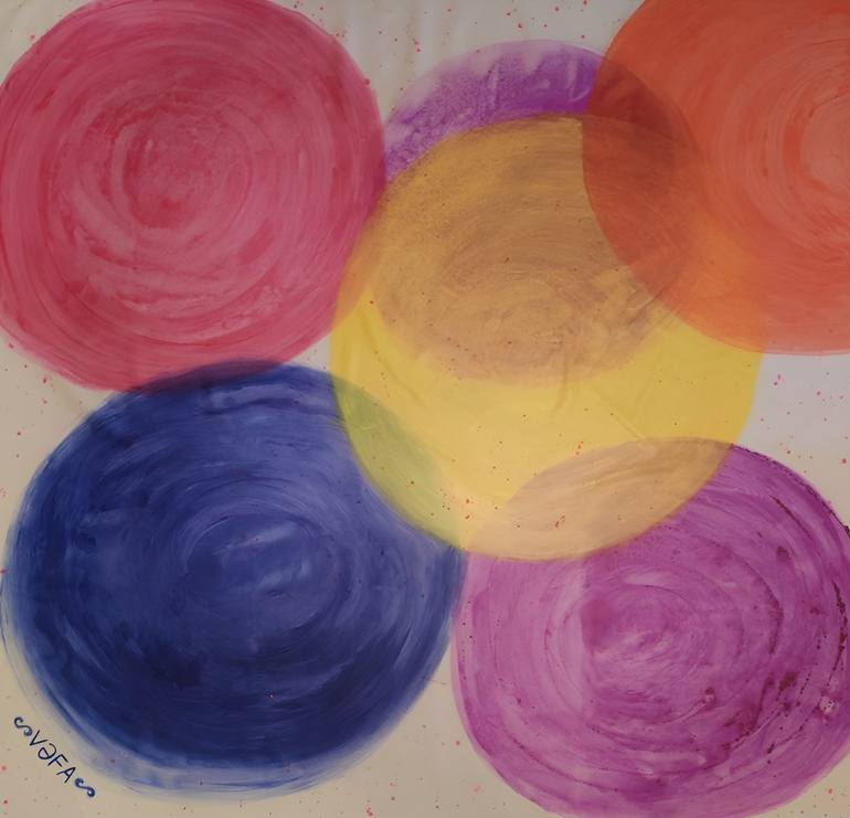 This vibrant and meditative composition is a cosmic dance of colors and forms that captivates the eye and stirs the soul. Rooted in geometric precision yet blossoming into semi-abstract realms, this piece embodies a playful pop art energy infused with a dreamlike quality. It’s a visual symphony desi...